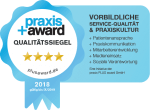 Liebe Patienten, es ist uns eine Ehre, Ihnen mitteilen zu dürfen, dass unsere Praxis und das ganze Team auch dieses Jahr wieder mit dem Praxis+Award Qualitätssiegel ausgezeichnet wurden.